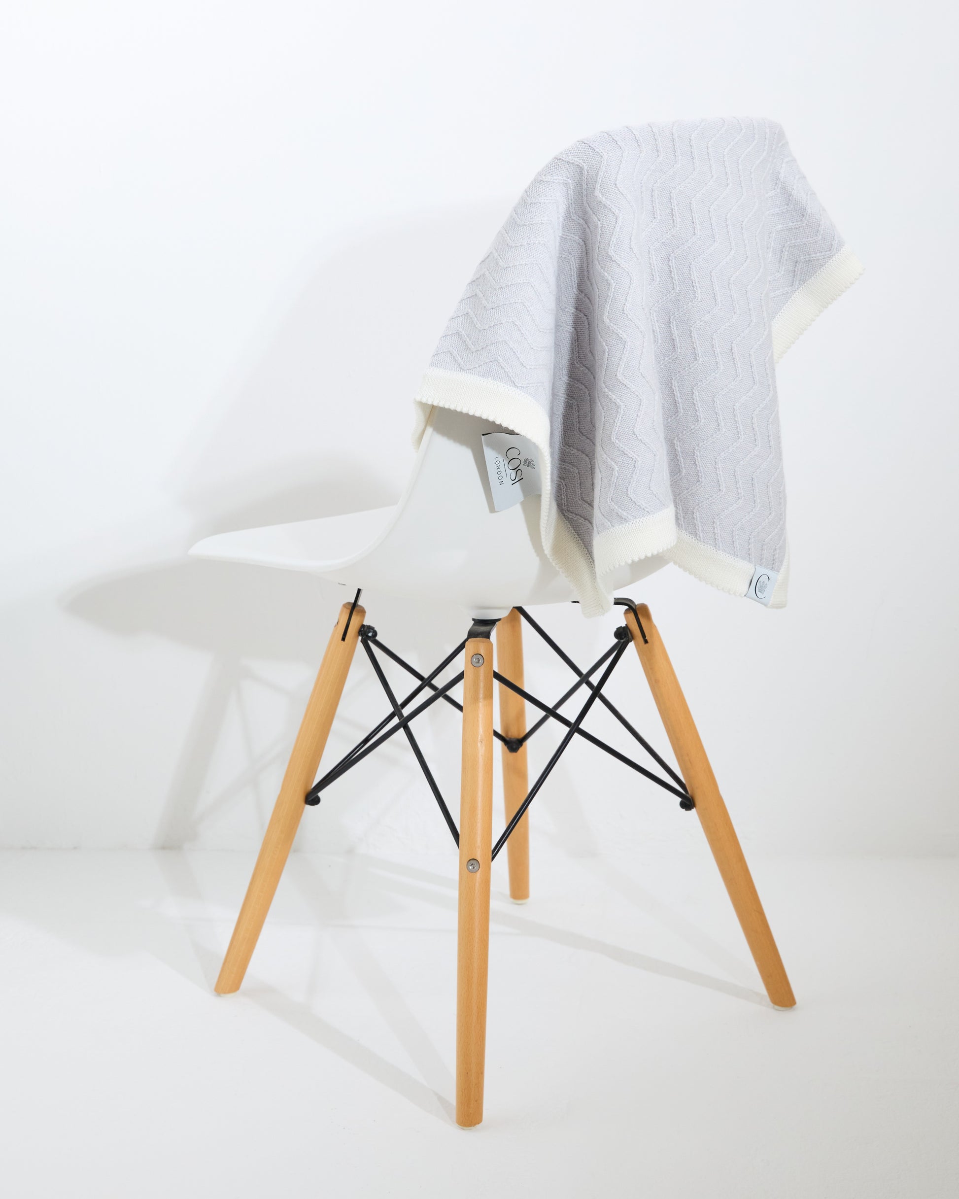 100% Merino ZigZag Ribbed Baby Blanket- Grey